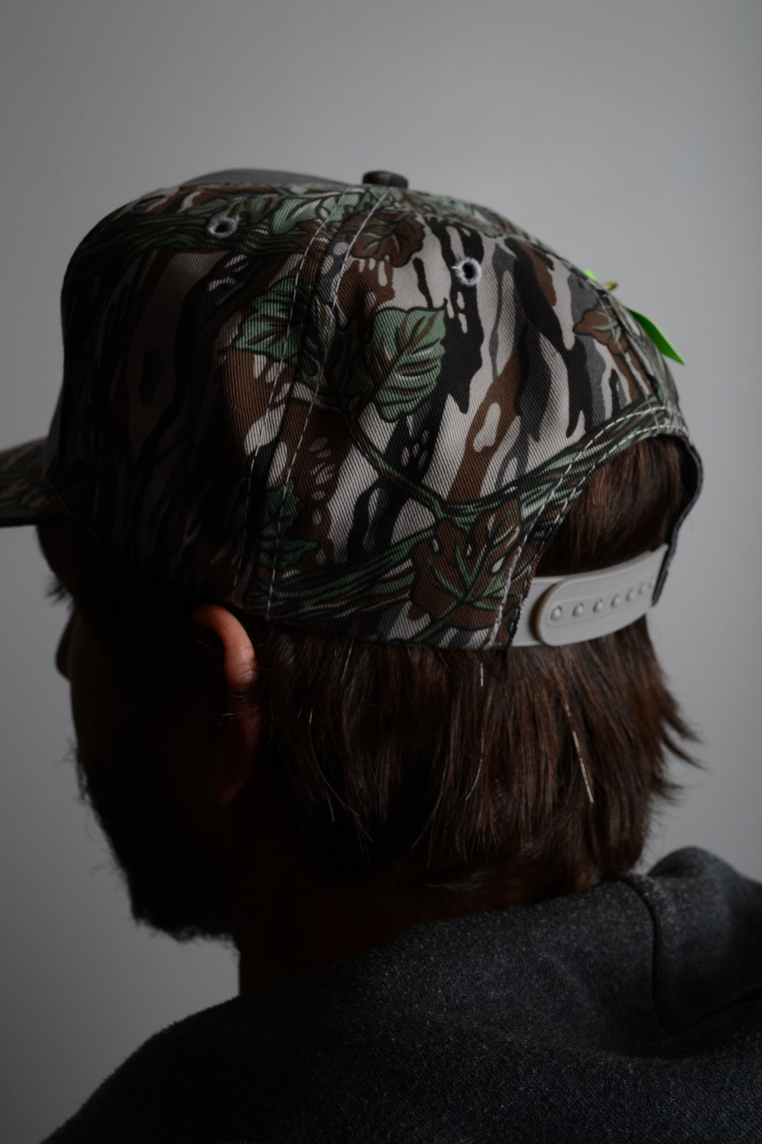 This poly/cotton blend hat features a 6panel construction, unique forest camo, and a plastic adjustable snap that gives it a vintage feel and fit